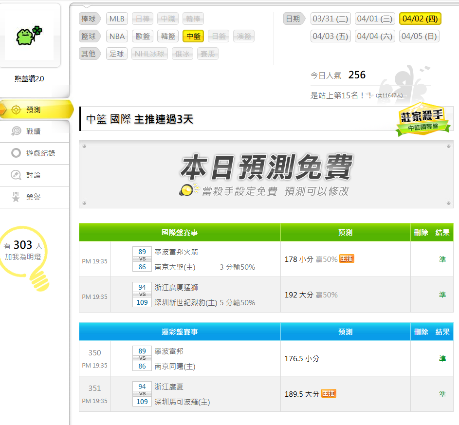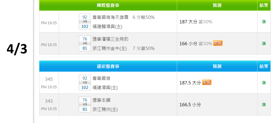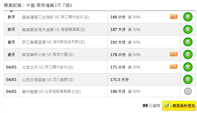 中國職籃 >> 4/4 連續2天2過2💰國際 連贏3天7過6💰信心繼續連莊💰特價沒了