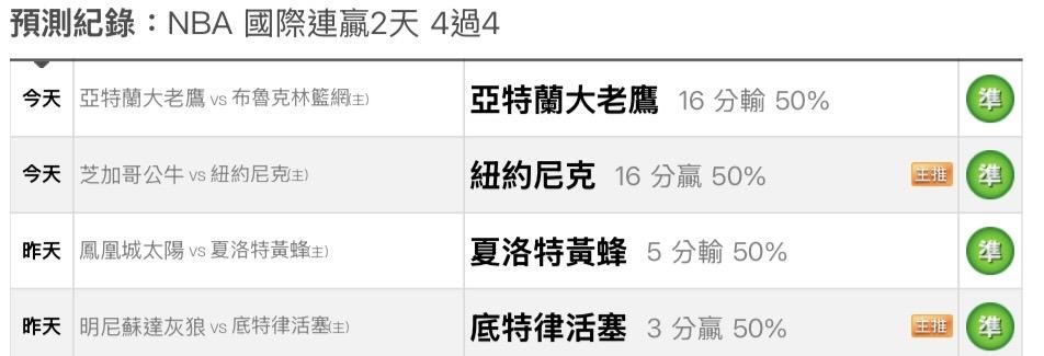 >> 4/5 NBA 國際連贏2天 4過4 今日雙盤3過3 免費分享