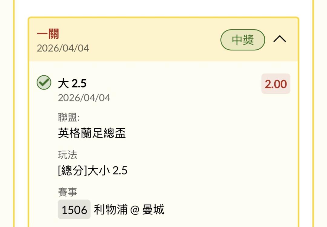 要不是昨天中午12點那一場日本足球,我突然的靈感買了賠率3.4 的主1.5大,如果沒有衝那一張的話,我拿不回來那4注。