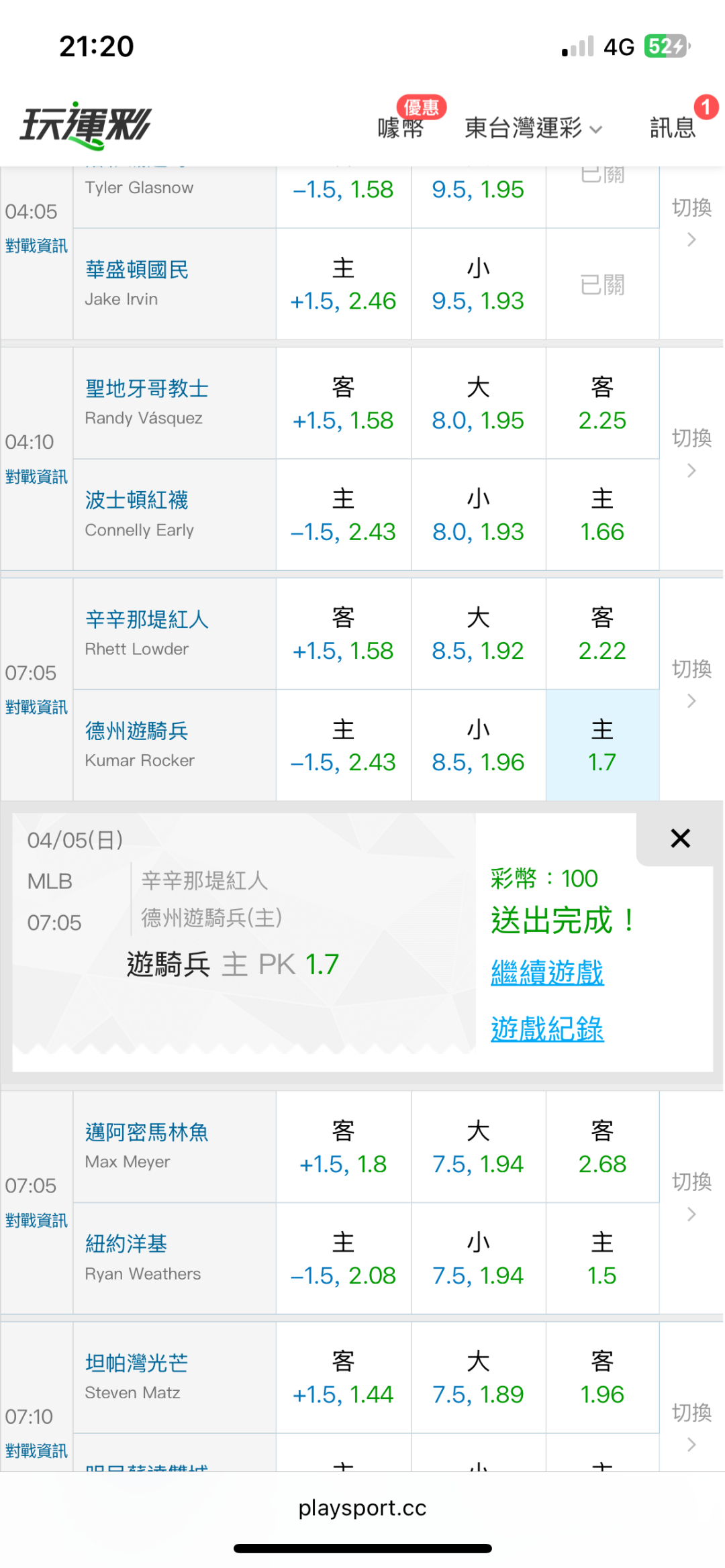 MLB >> 4/5東台mlb國際盤【主推近5日過4】主推信心滿滿(貓場)特價用完了 喜歡的跟上東台~
