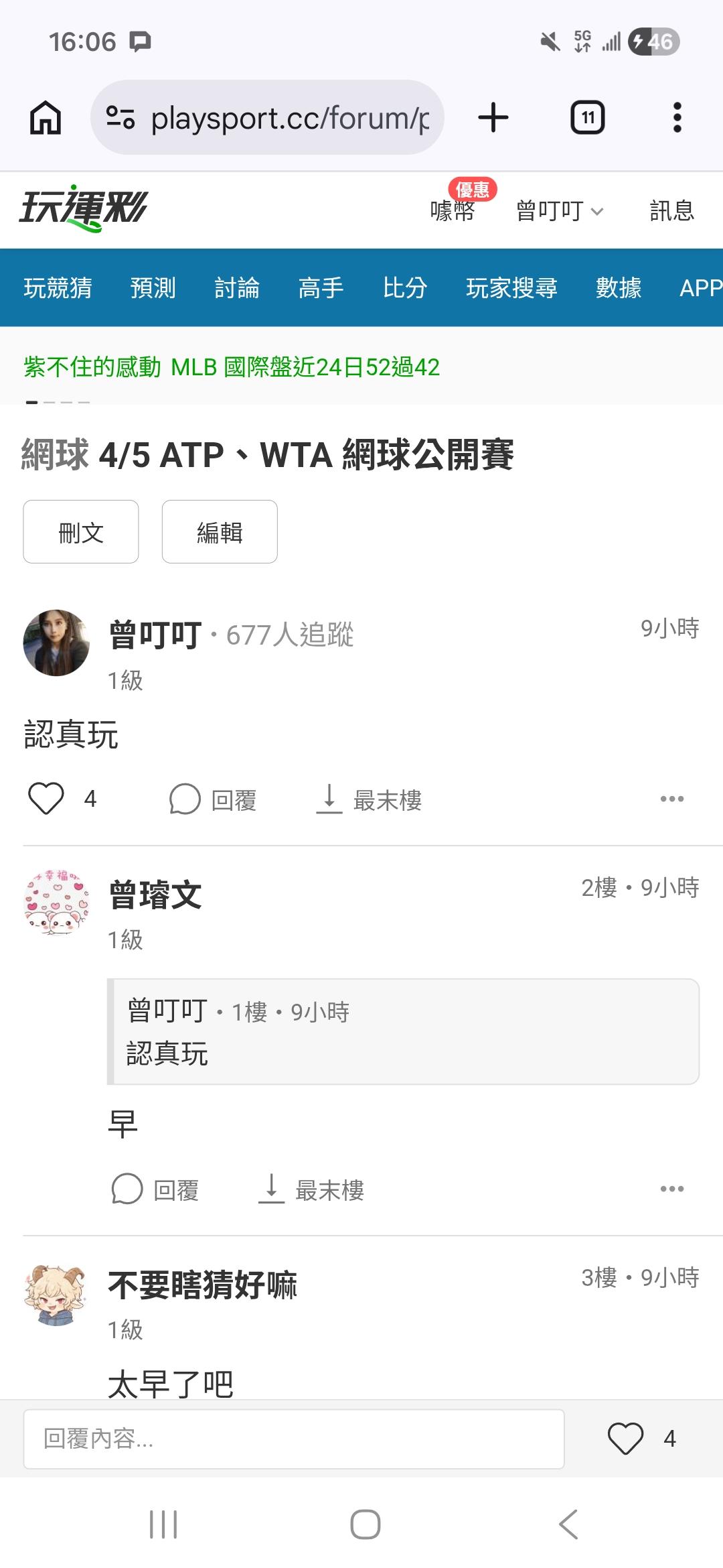 網球 >> 4/5 ATP、WTA 網球公開賽