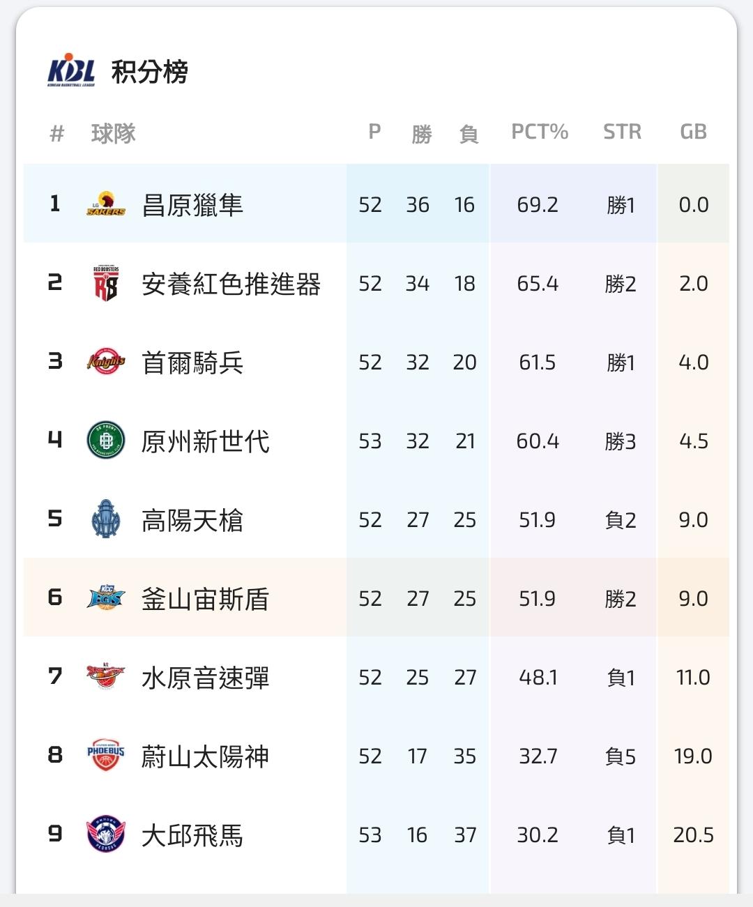 韓國職籃 >> 剩餘例行賽晉級情況