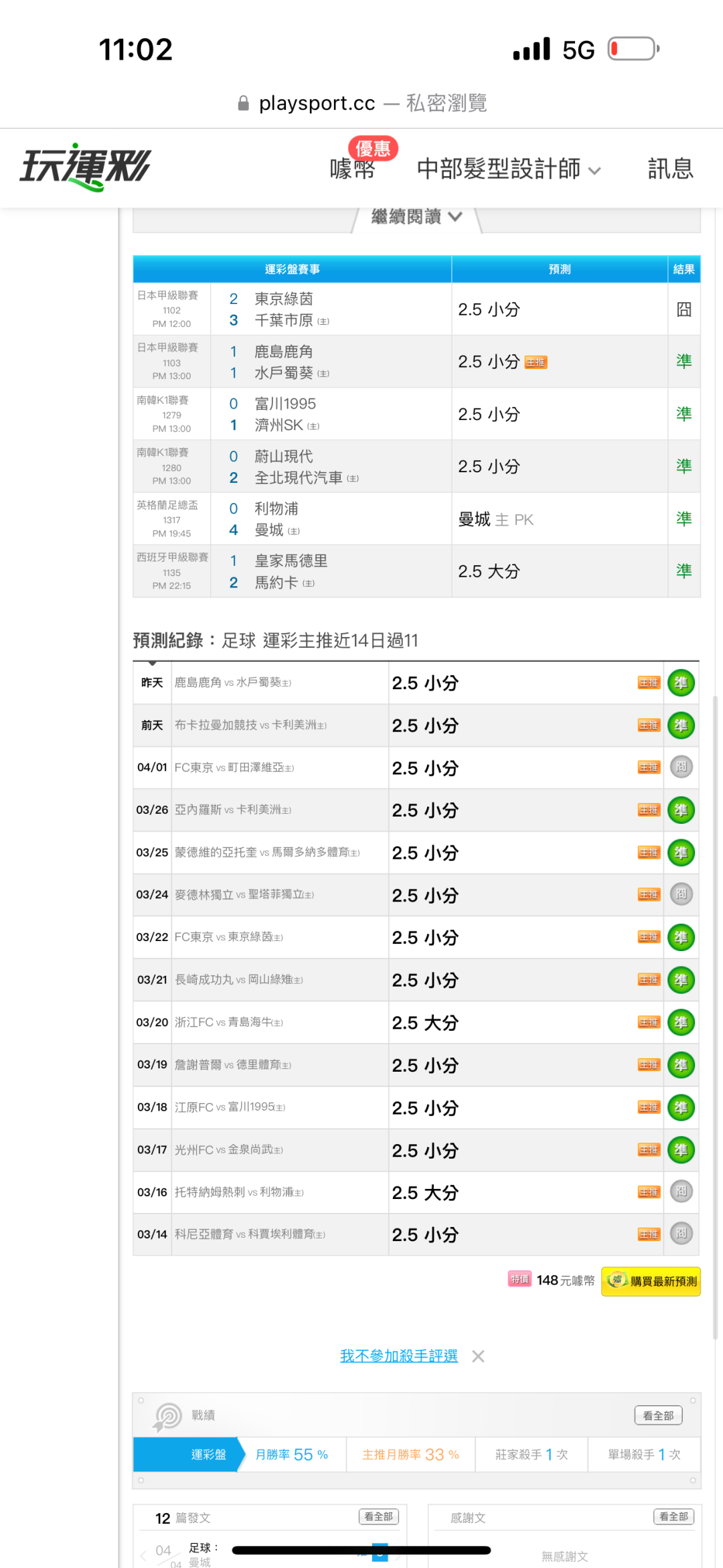 >> 昨天足球預測6過5