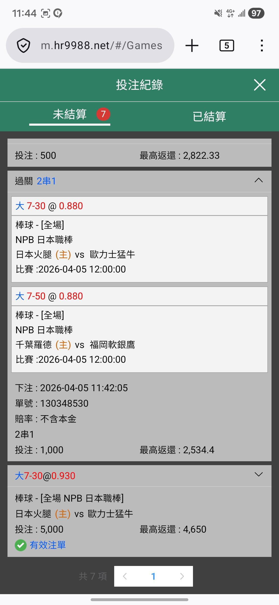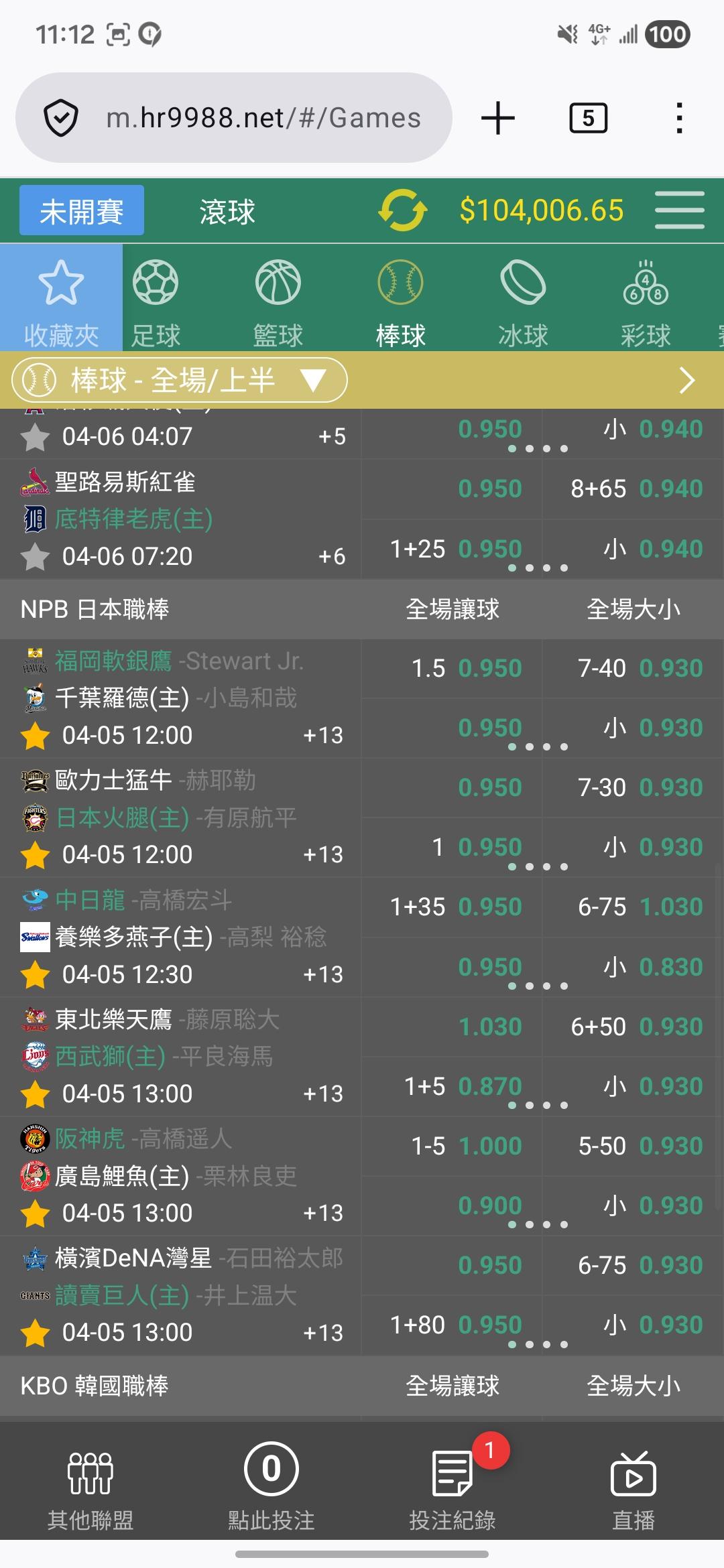 日本職棒 >> 昨天抓兩場大分雙過,今天有人要嗎?