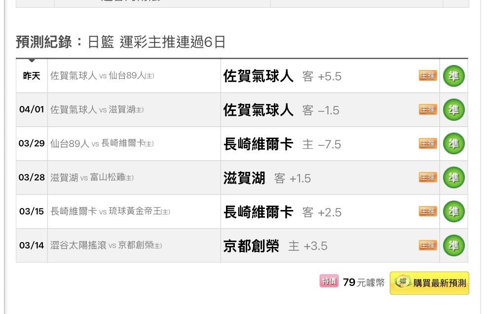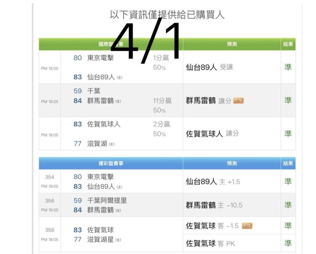日本職籃 >> 4/5日籃運彩主推連過6日 本週9過9 本月4過4 勝率全部100% 特價販售