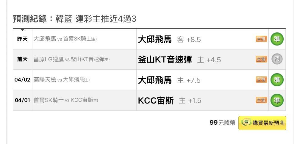 韓國職籃 >> 4/5 韓籃運彩主推近4過3 4/2雙盤2過2全過 持續保持穩定獲利高勝率 歡迎參考合牌