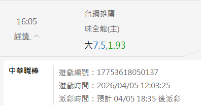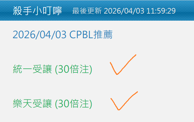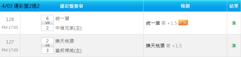 中華職棒 >> 4/05 CPBL推薦【運彩主推信心度高】【小叮嚀有注數推薦】【免費場歡迎參考】【今日特價】