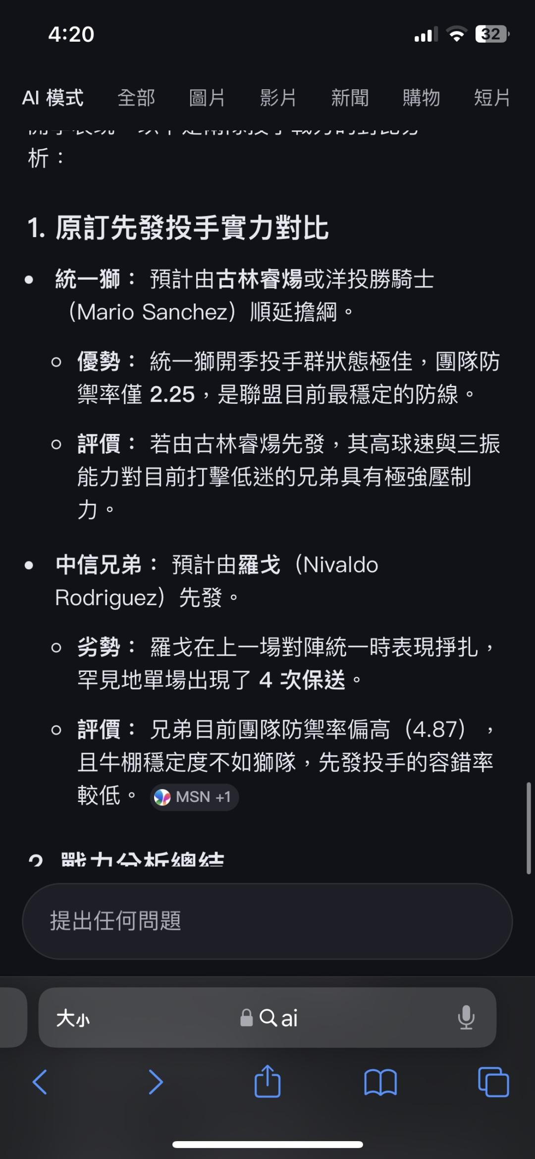 中華職棒 >> 請問是我AI有問題嗎