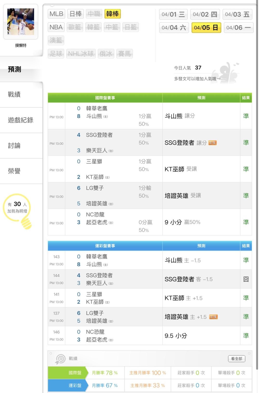 >> 這星期轟兩天韓棒爽