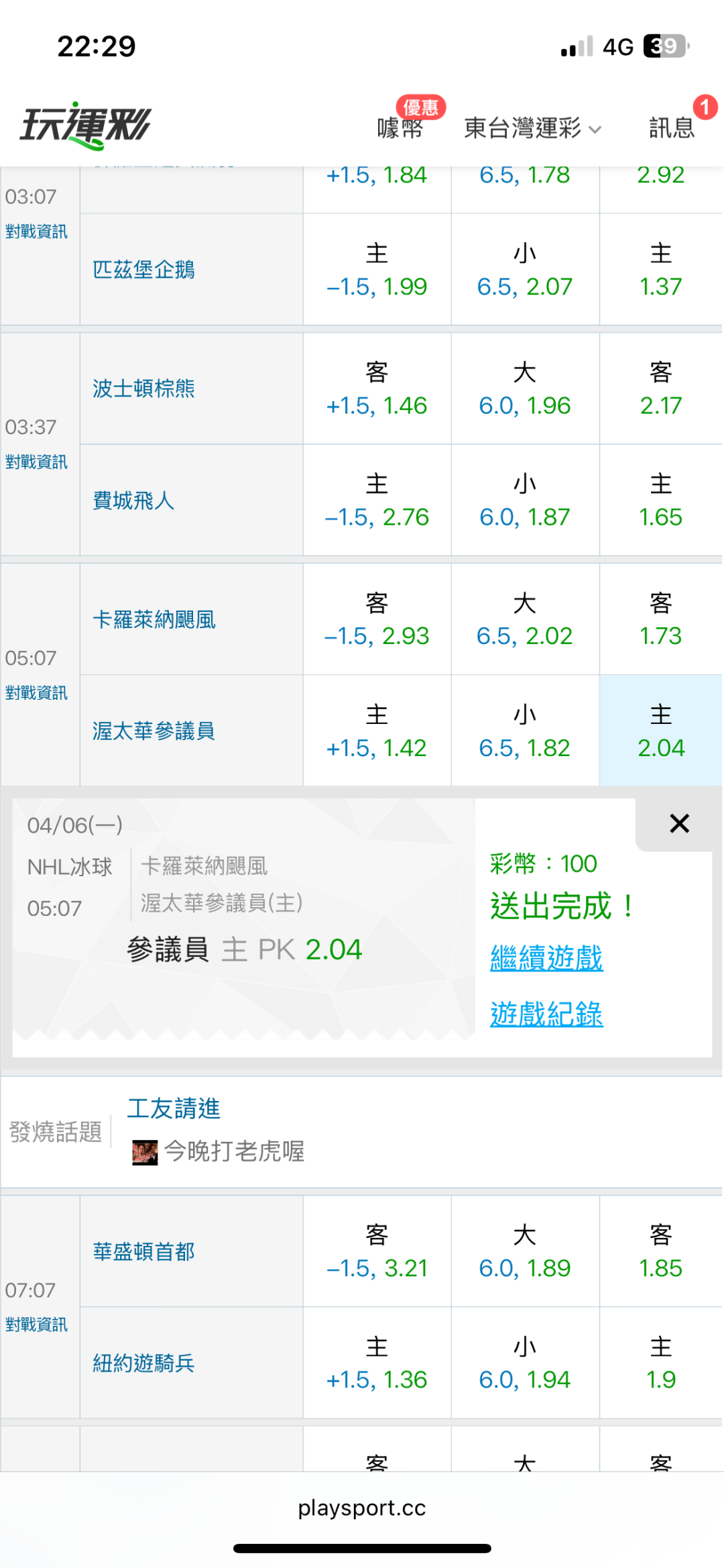 NHL冰球 >> 4/6東台NHL國際盤【近30日贏26日】主推信心滿滿(貓場)特價用完了 喜歡的跟上東台~
