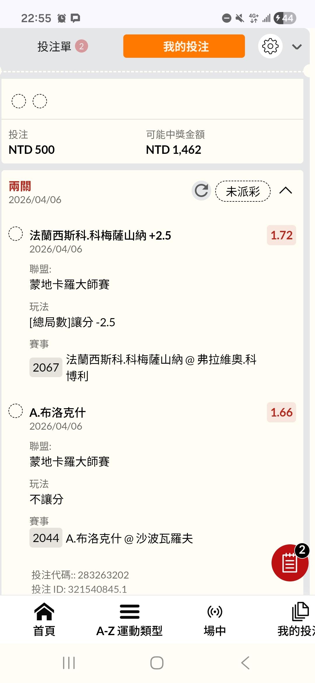網球 >> 4/6 ATP、WTA 網球公開賽