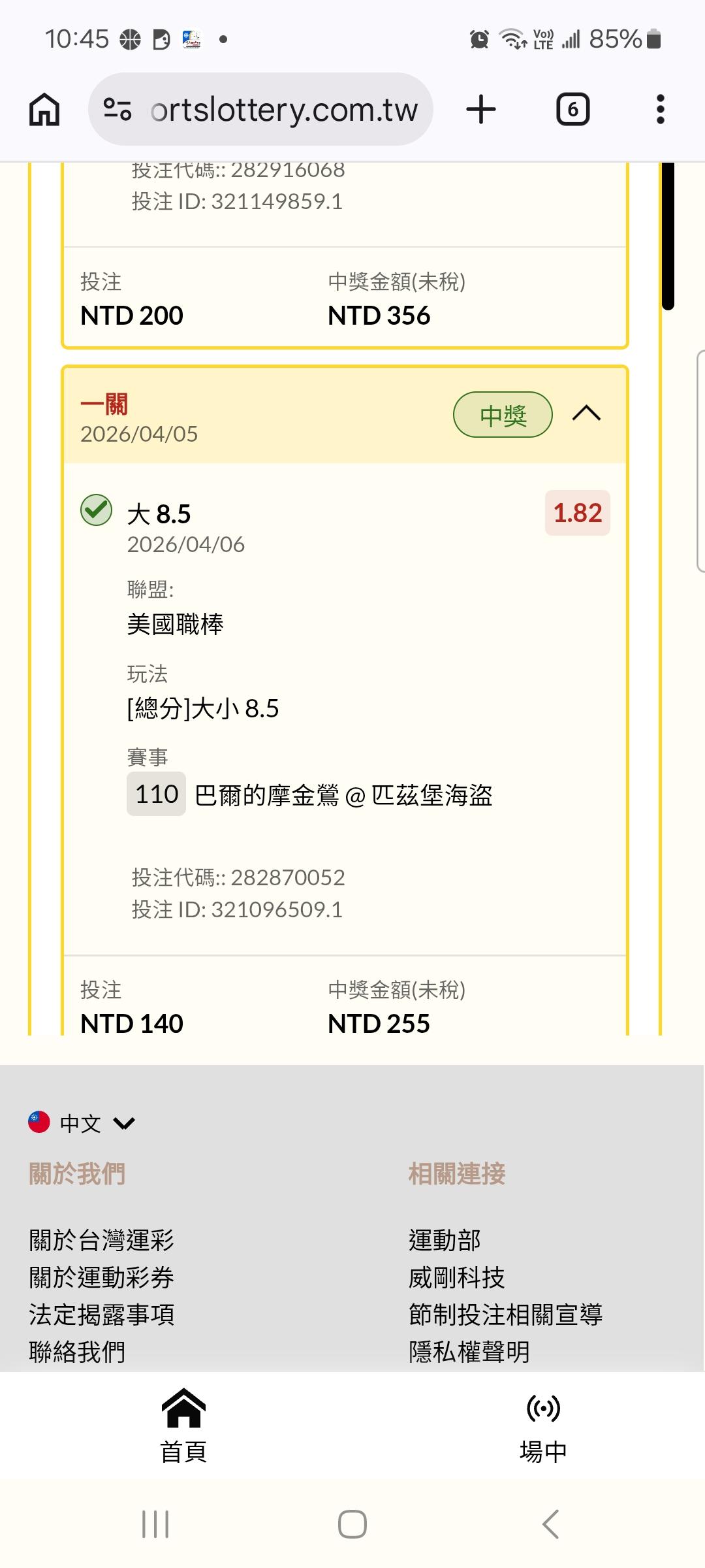 吃高賠。還有預測正確。感謝維大。看好8.5小分。感謝您阿利阿斗。