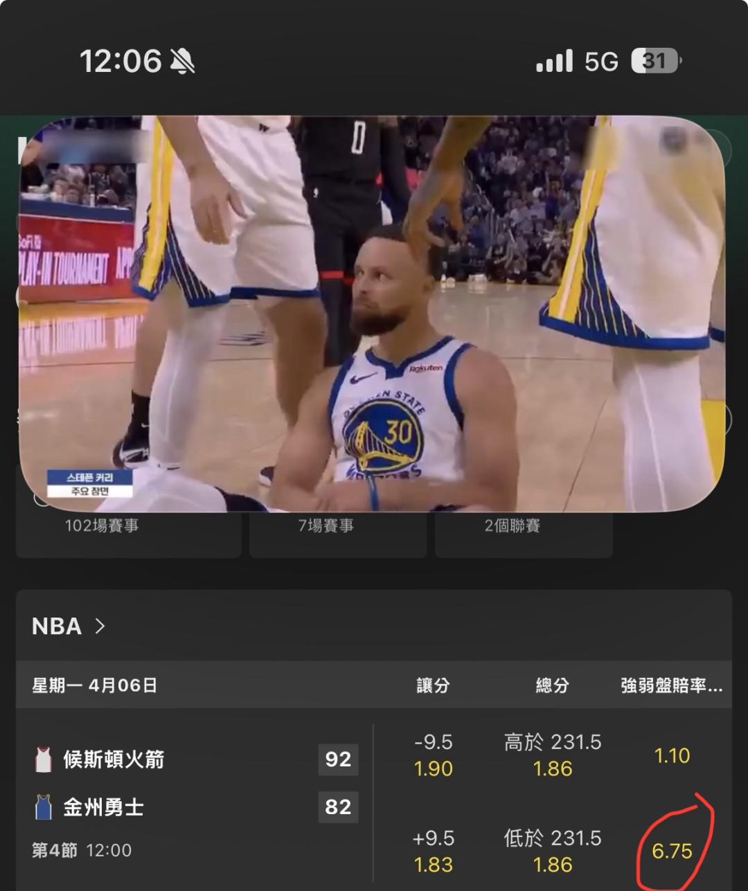 我看到365,勇士獨贏開到2.7,比初盤還高,我就覺得勇士應該不會贏球了