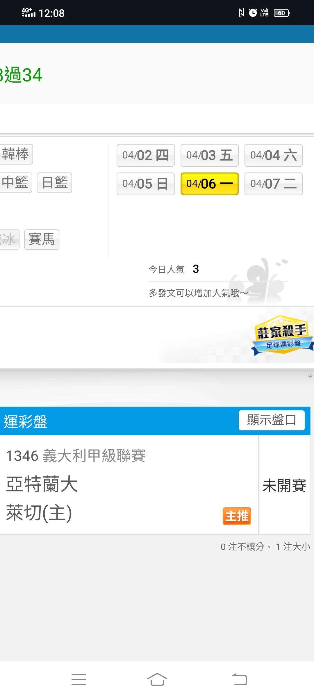足球 >> 4/6單場❤️義甲21:00【亞特蘭大-萊切】❤️