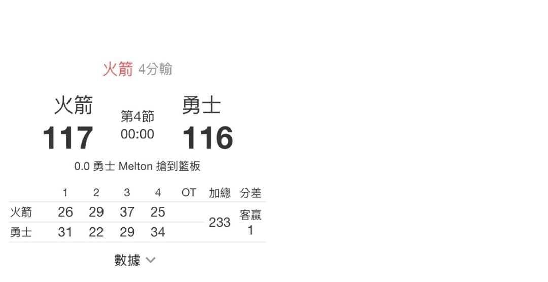 火箭 4分輸50%