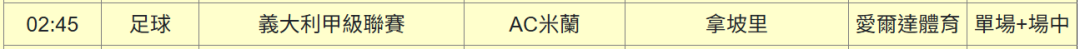 足球 >> 連贏2天 5過5-[主推 凌晨2:45 單場 義甲 AC米蘭VS拿坡里]-都有正確比分推薦