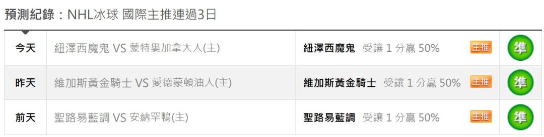 NHL冰球 >> 又全過了 [連贏3天 6過6 大獲全勝]-[高信心場 二場決勝]-有信心 拚連4天全過