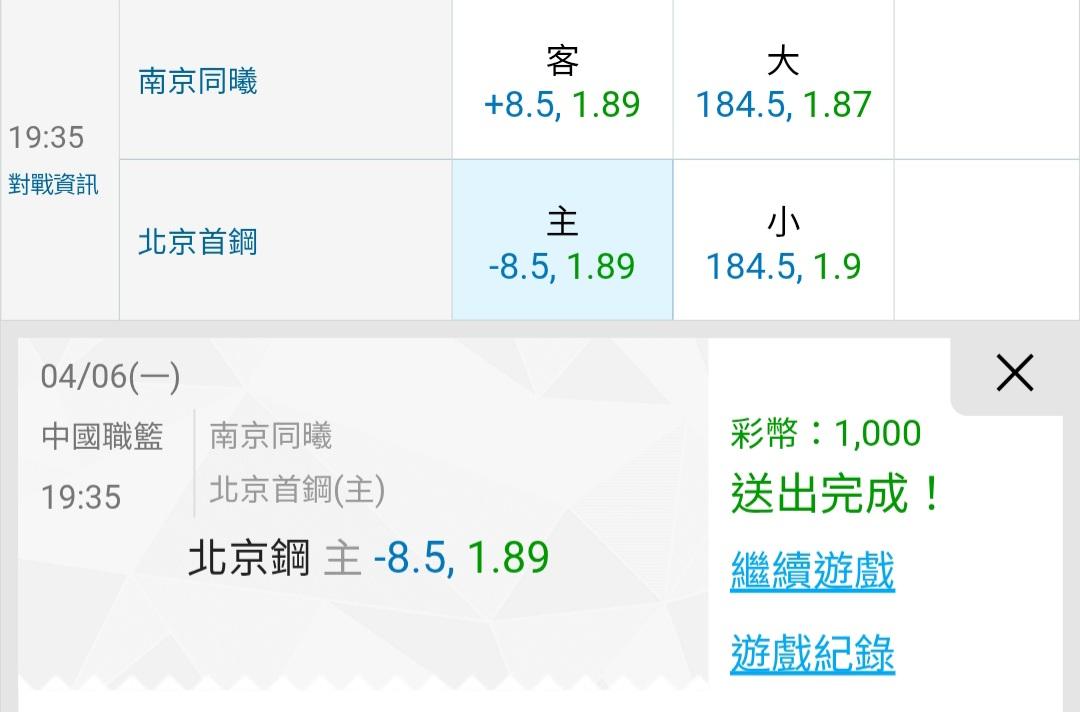 中國職籃 >> 昨天主推順利收……今天看好2場雙主推