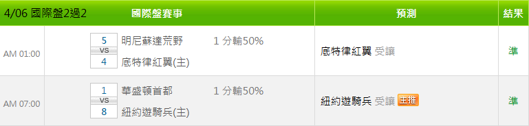 NHL冰球 >> 4/07 冰球推薦【上期國際莊殺第2名】【國際盤近31日 66過54】【免費場歡迎參考】