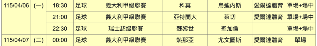 足球 >> ⚽️飛天御劍流,運彩單場:瑞士超級聯賽:聖加倫VS蘇黎世,意甲 尤文圖斯:熱拿亞