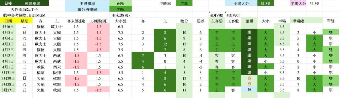 >> 4/7 日棒 運彩單場 羅德 vs 歐力士