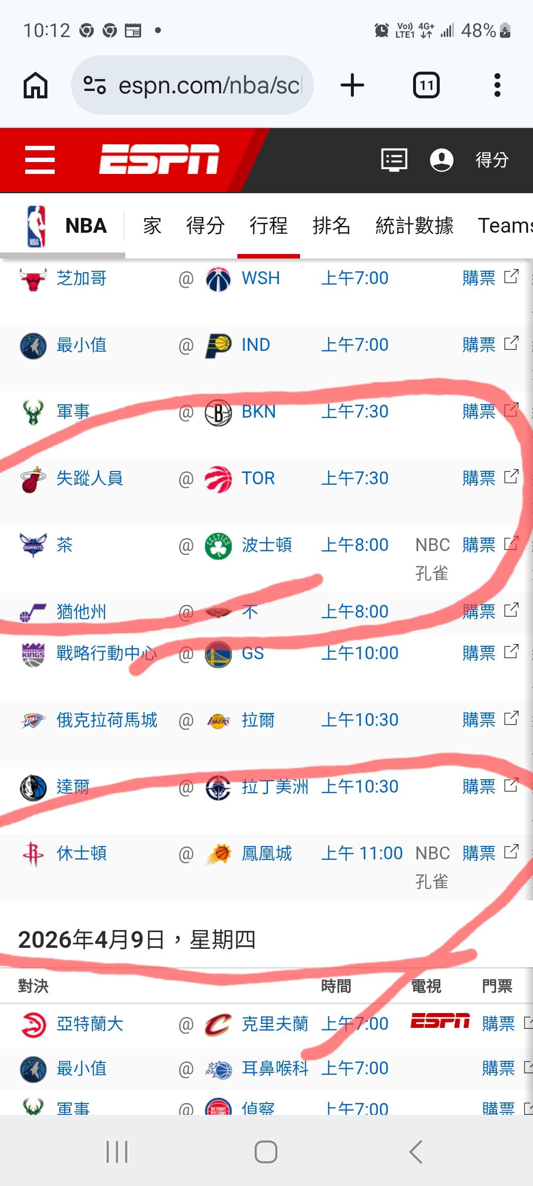 NBA >> 對應說