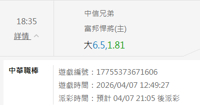 中華職棒 >> 4/07 CPBL推薦【運彩主推信心度高】【小叮嚀有注數推薦】【免費場歡迎參考】【今日特價】