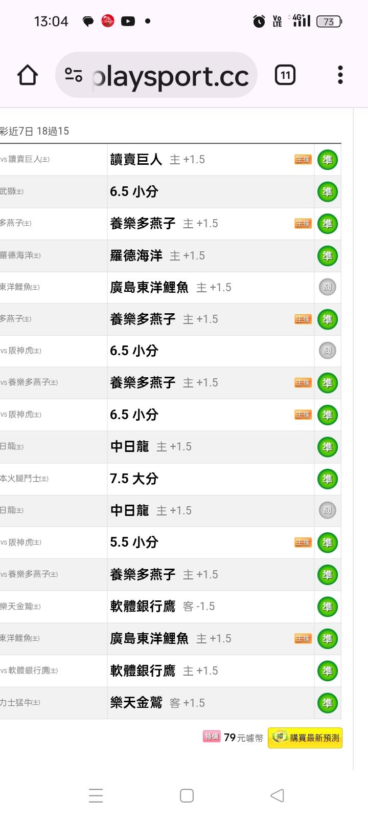 日本職棒 >> 主推連贏8天,連贏8天今天很看好的一隻(多多vs板神)拼連9