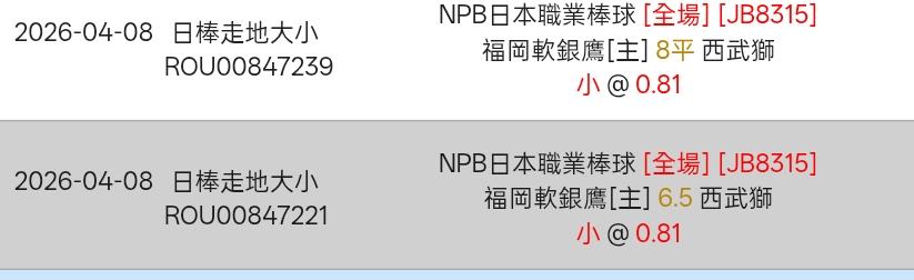 我原本也看好小分,但看軟銀火力好像不錯就放棄了
