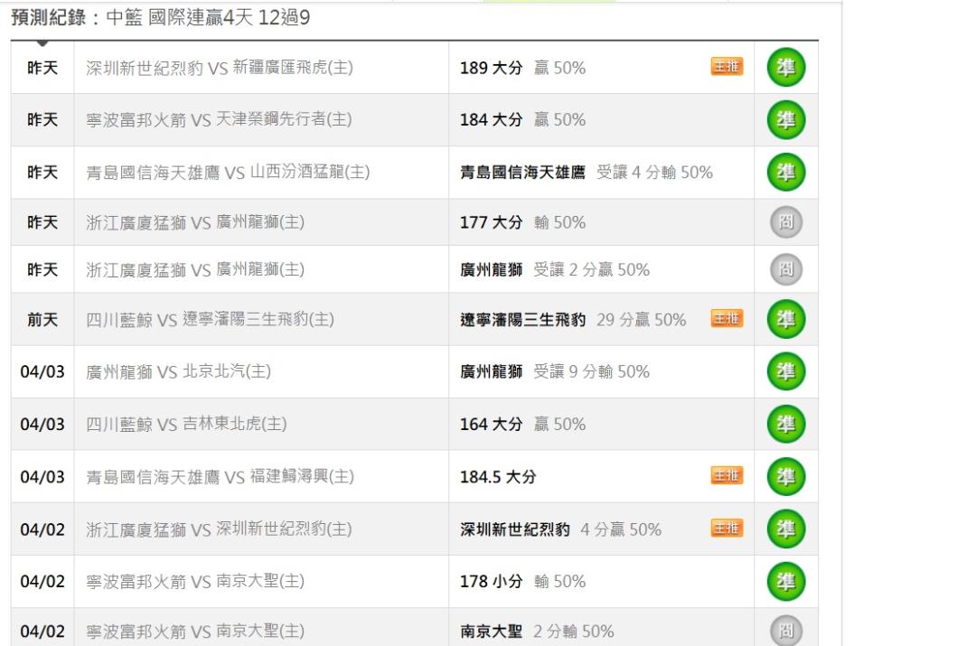 >> 中籃分享(國際 連贏4天 12過9,國際主推連過5日)