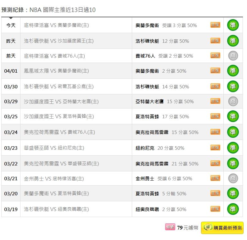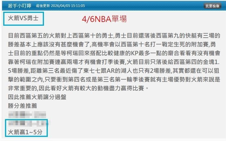 NBA >> 4/8NBA國際主推近13日過10 昨天小叮嚀推薦單場:火箭PK+火箭贏1勝分差都抓到 明單場特價
