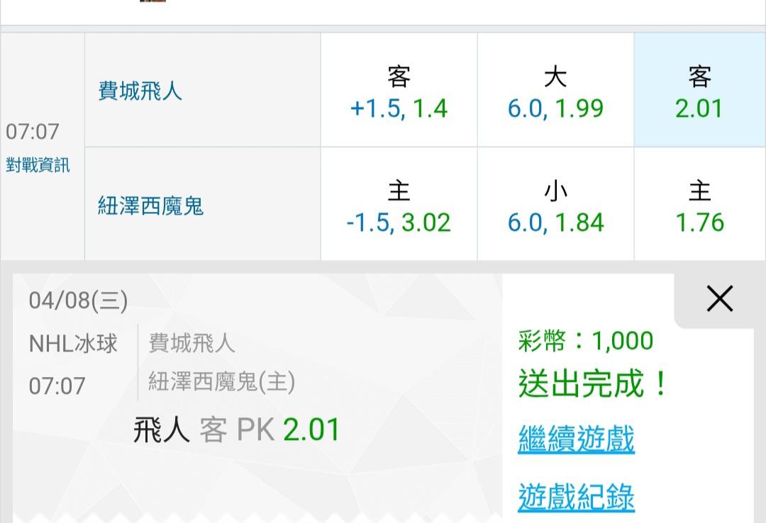 NHL冰球 >> 今天也是2過2全收……主推又贏錢了【主推近25過24】