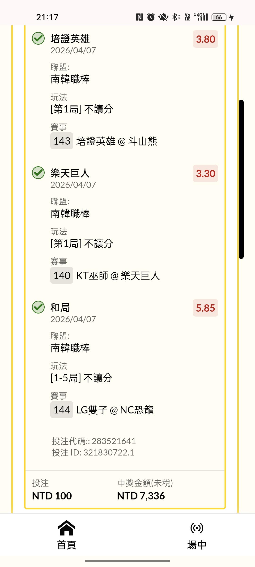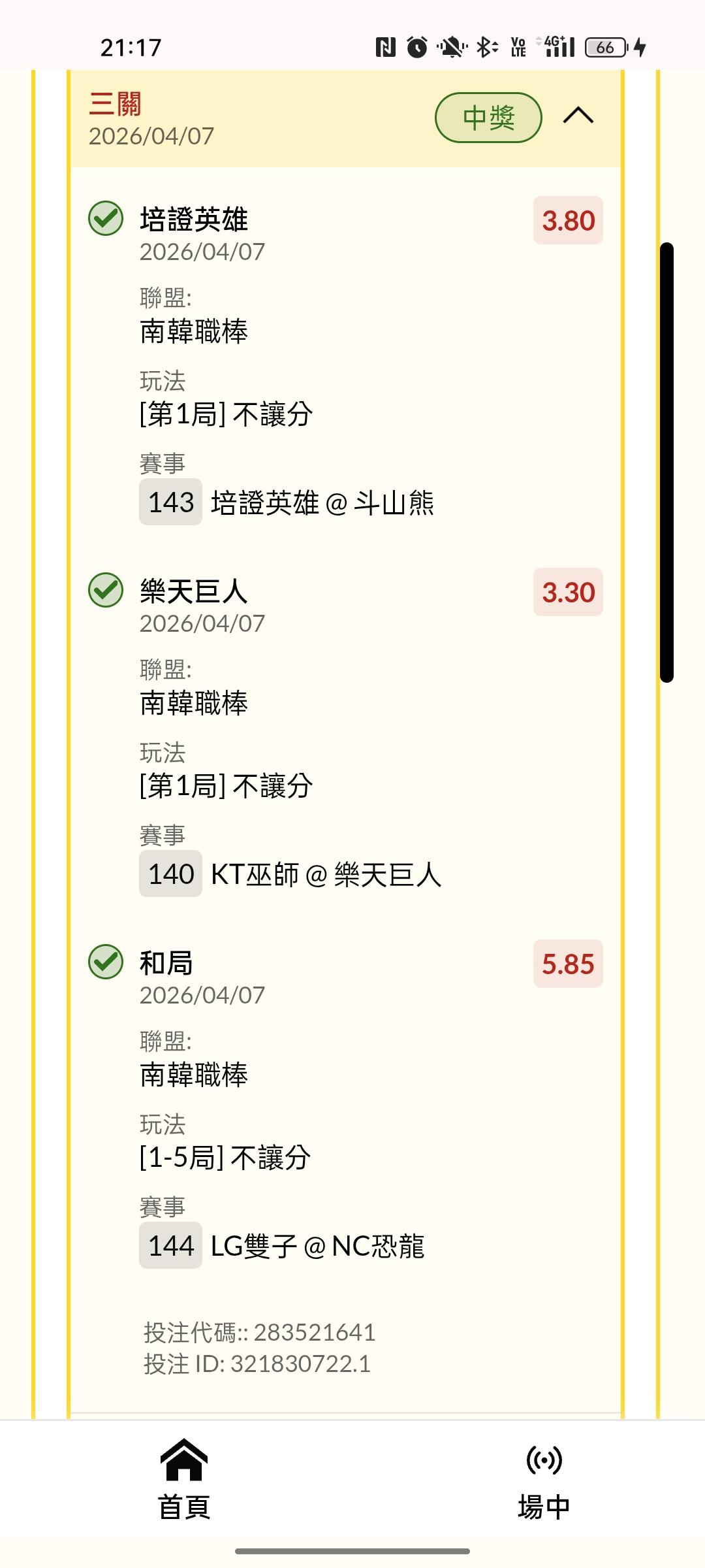 >> 韓職 第一局勝 第五局和 串關3*1*100.......73倍