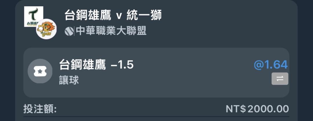 我今天下台鋼-1.5 如果等等直接喊結束是賠錢還是退錢