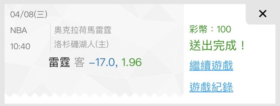 明天免費推薦 雷霆讓分