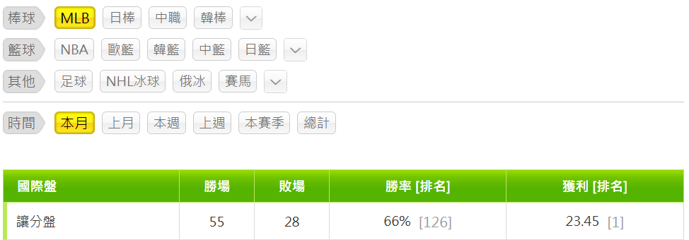 >> 讓分盤獲利全站第1 (月初至今23倍)