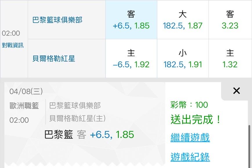 我忘了 我剛剛只有抓美籃 預測點好了 早場跳過 已經開賽了 |