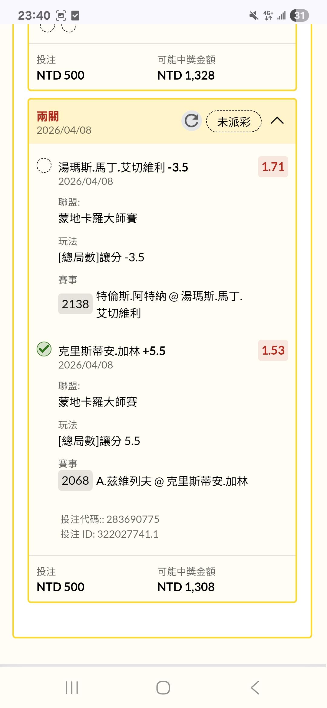 網球 >> 4/8 ATP、WTA 網球公開賽