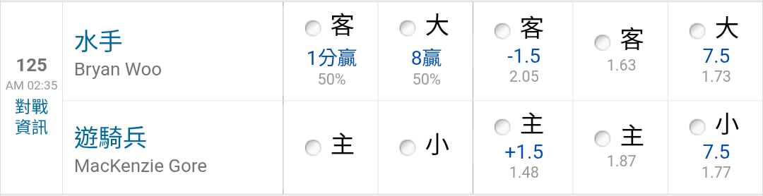 | 運彩盤賽事 |