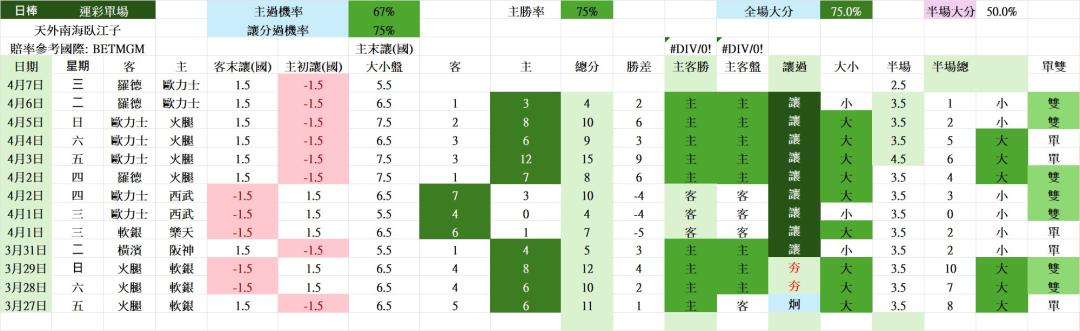 >> 4/8 日棒 運彩單場 羅德 vs 歐力士