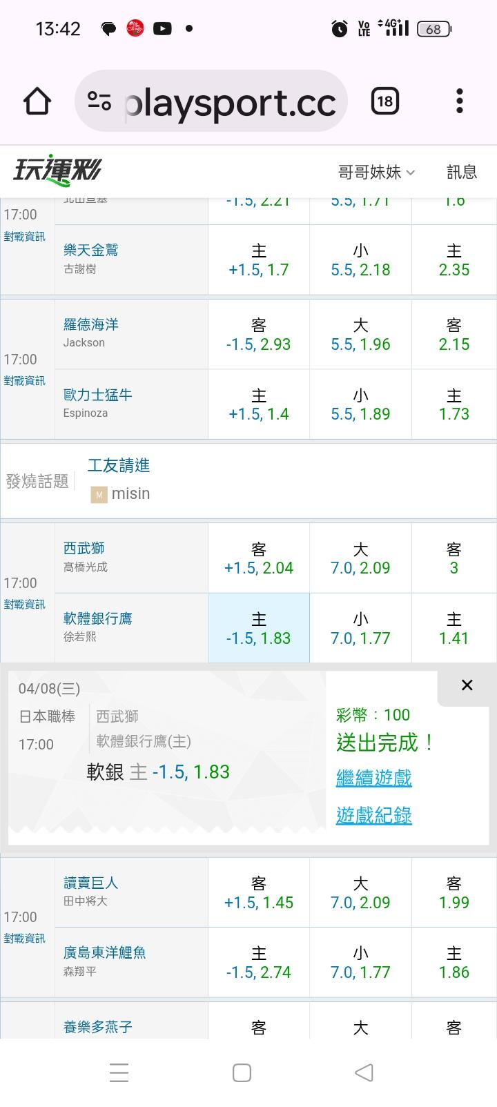 現在只搞美跟台 ..NBA 差不多不碰了😆