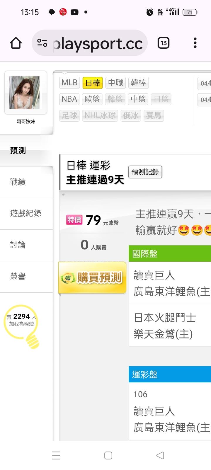 日本職棒 >> 主推連贏9天,連贏9天今天最看好的一隻(巨人vs廣島)拼連10