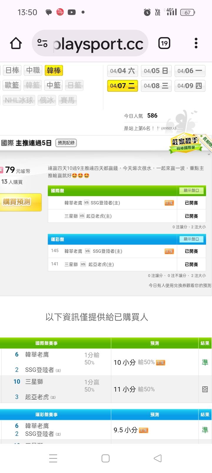 韓國職棒 >> 主推重點連五天都贏錢,雙主推近3天6過6(培證vs斗山)拼連6