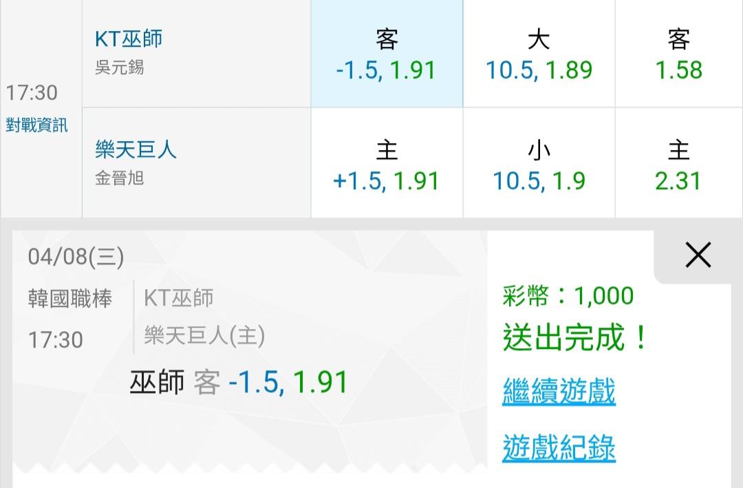 韓國職棒 >> 連贏3天9過7……今天主推一場大小分