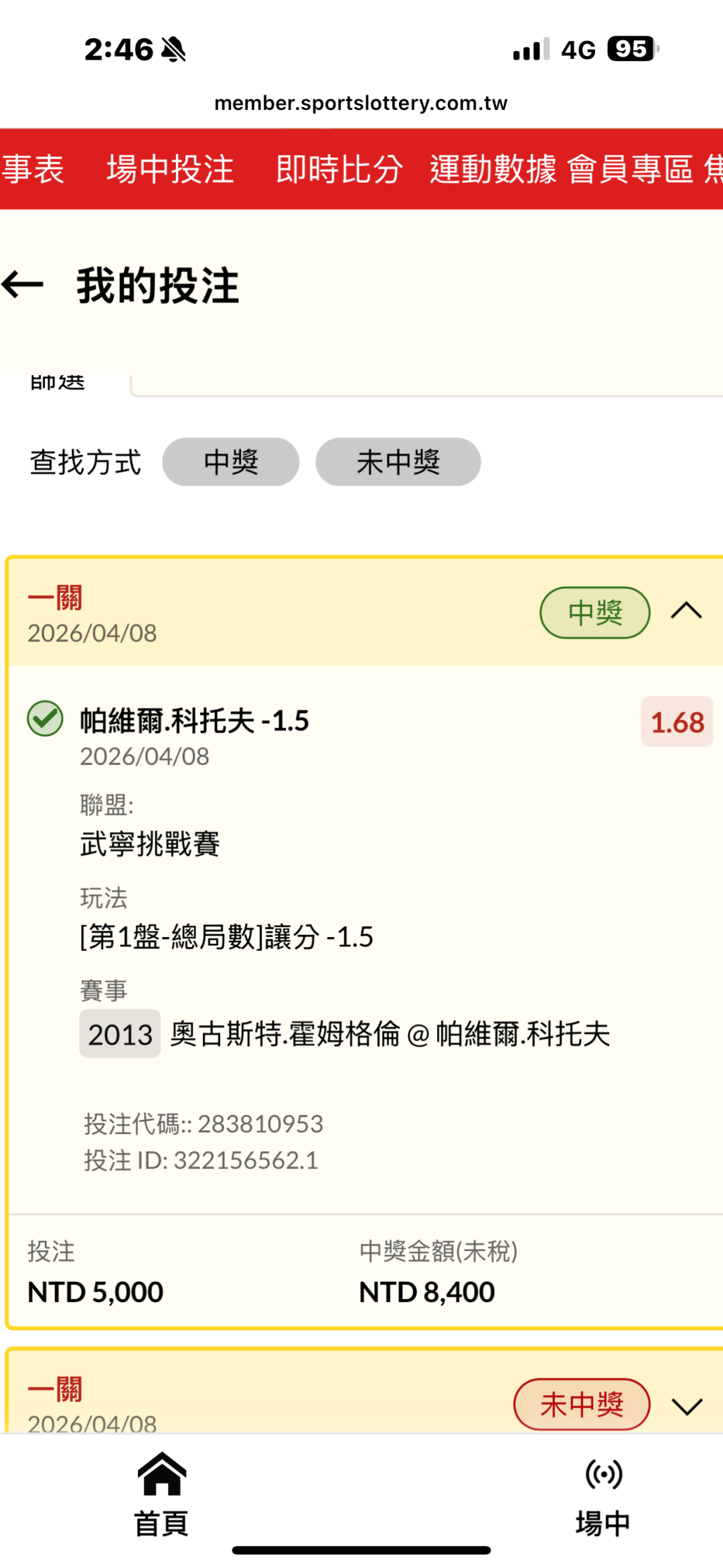 網球 >> 第一盤過,再推一張
