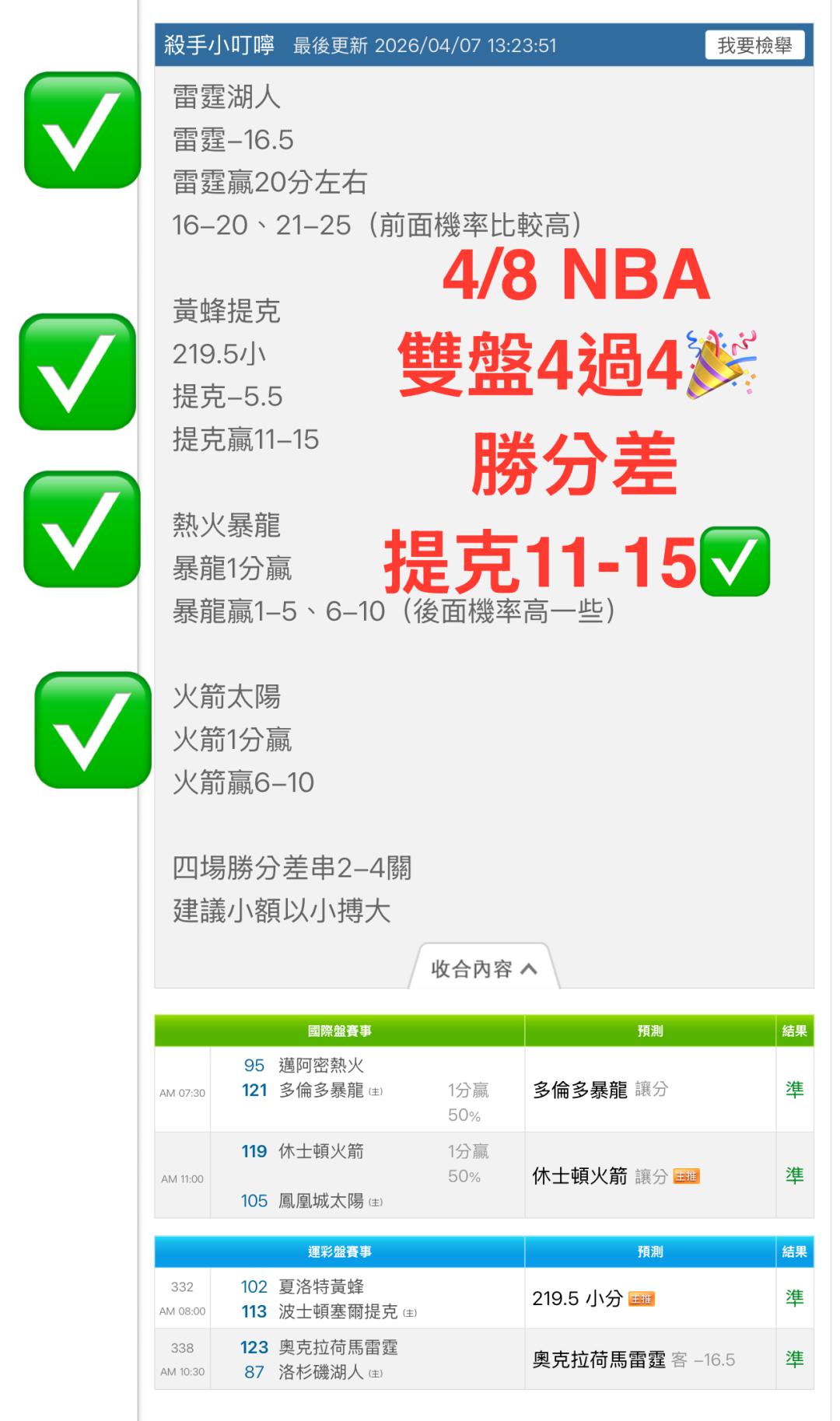 NBA >> 4/9🏀🌟🎯《NBA推薦》NBA 今日雙盤 4過4 全轟🎉