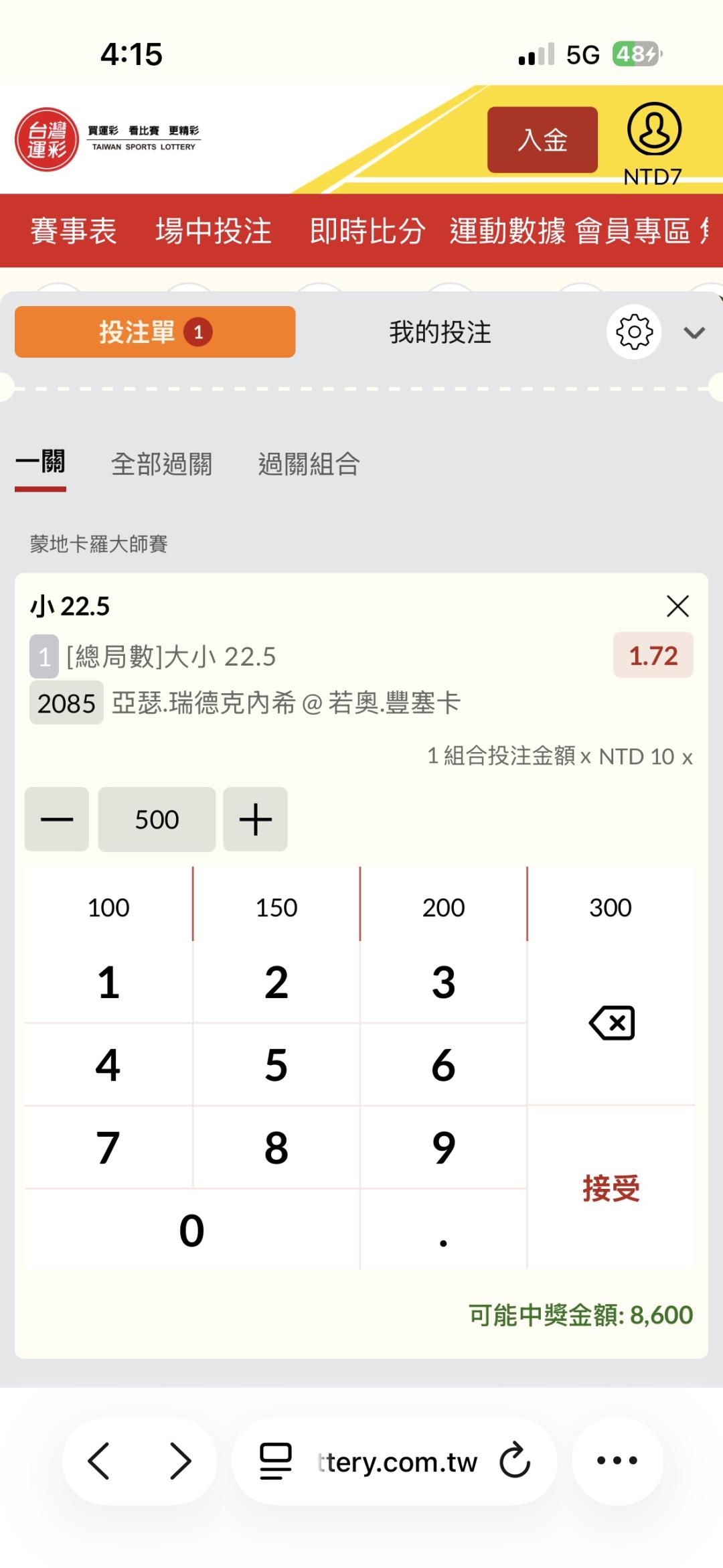 網球 >> 亞瑟 vs 若歐