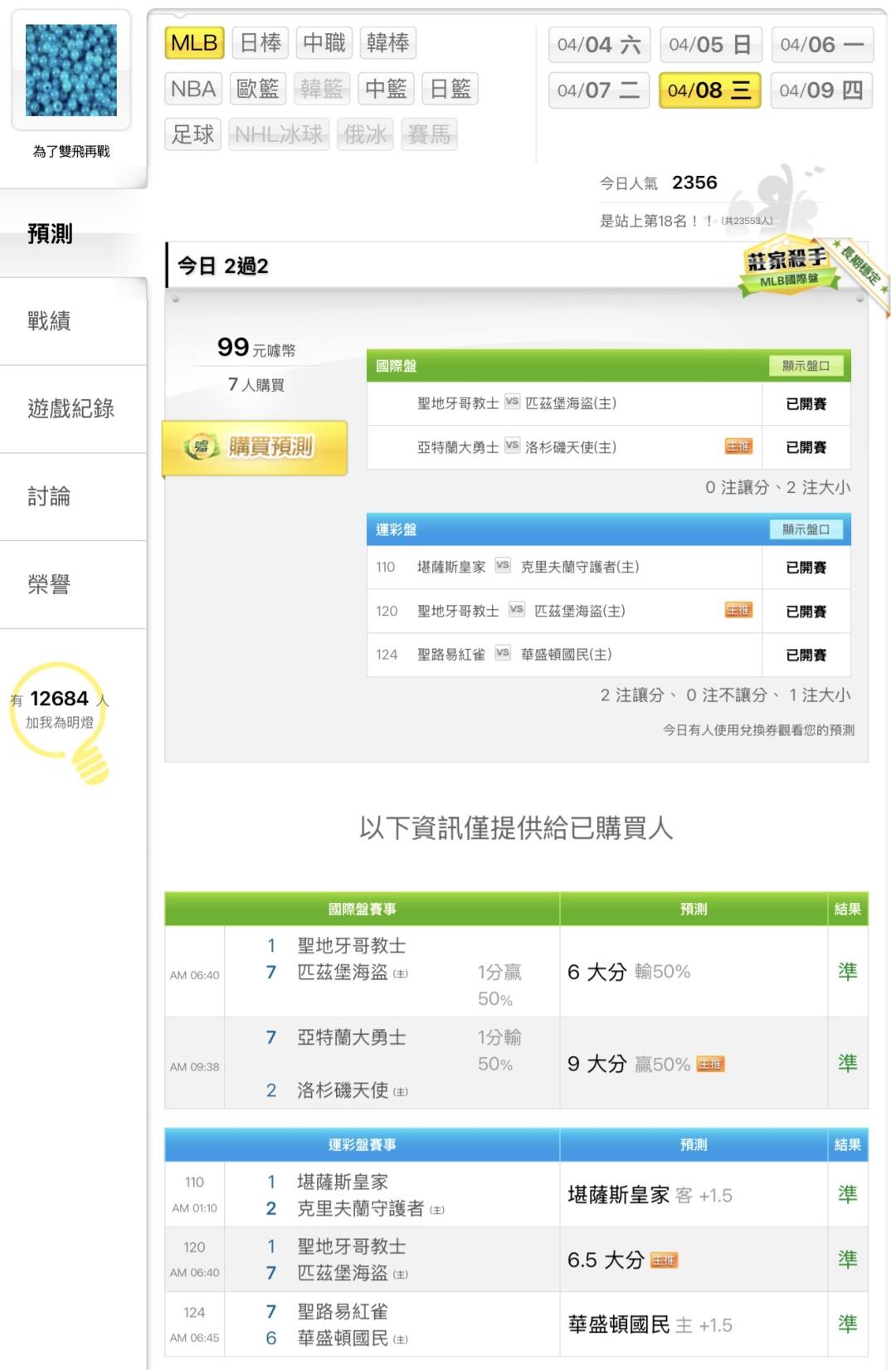 MLB >> 美棒「釘孤枝 新台幣 10萬」洛杉磯道奇 VS 多倫多藍鳥,今日雙盤預測5過5全贏贏贏贏贏贏贏