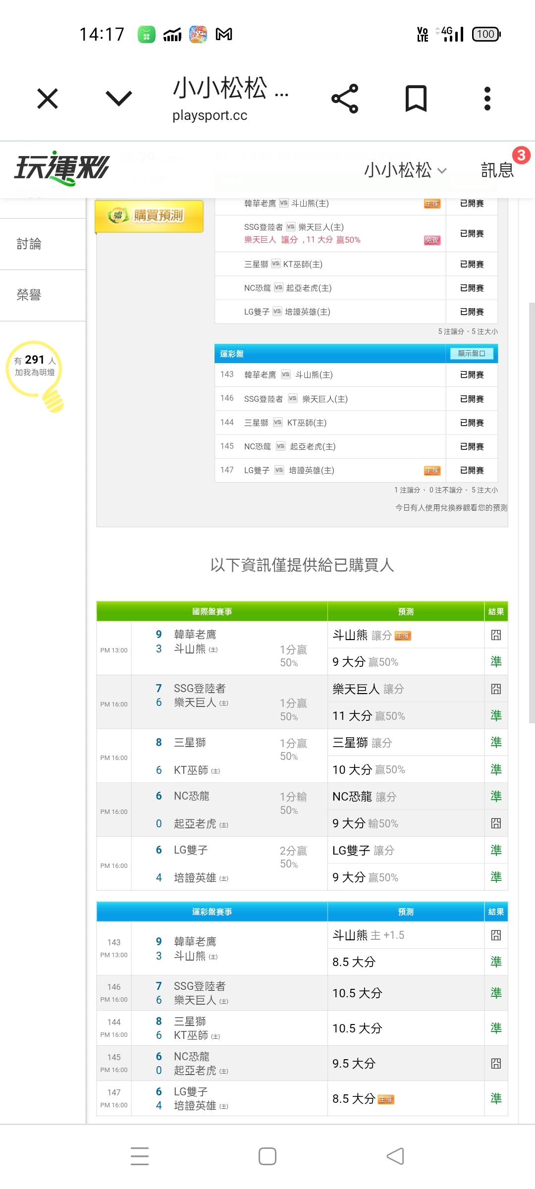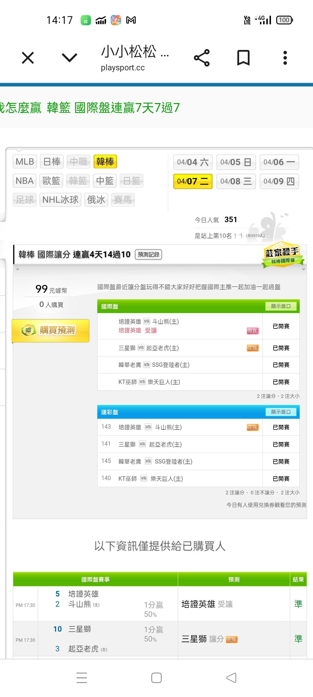韓國職棒 >> 溫馨提醒大家因為快要開賽了最近讓分盤真的表現得很好希望相信我的人好好把握最後的幾分鐘一起加油過盤