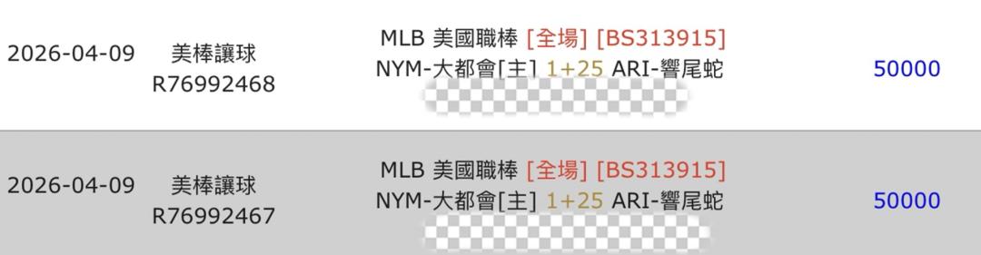 >> 你們最愛的「單場 新台幣 10萬」亞歷桑那響尾蛇 VS 紐約大都會,今天雙盤5過5全贏贏贏贏贏